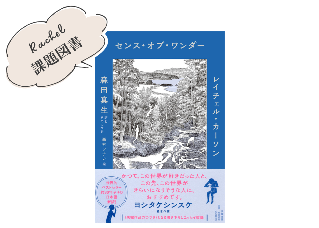 5月28日(No.4)は、『センス・オブ・ワンダー』をみんなで語り合う会です。当日までに、お手すきの時に読んでみてくださいね。「読まなくちゃ!」と構えなくても大丈夫。実はこの本、とっても短くてあっという間に読めてしまうくらいやさしい内容なんです。(森田真生さん訳なら本文はわずか28ページ!)訳者は遠藤恵子さん(新潮社)でも、森田真生さん(筑摩書房)でも、お好きな方でOK。皆さんの心にどんな景色が浮かんだか、当日お話しできるのを楽しみにしていますね。